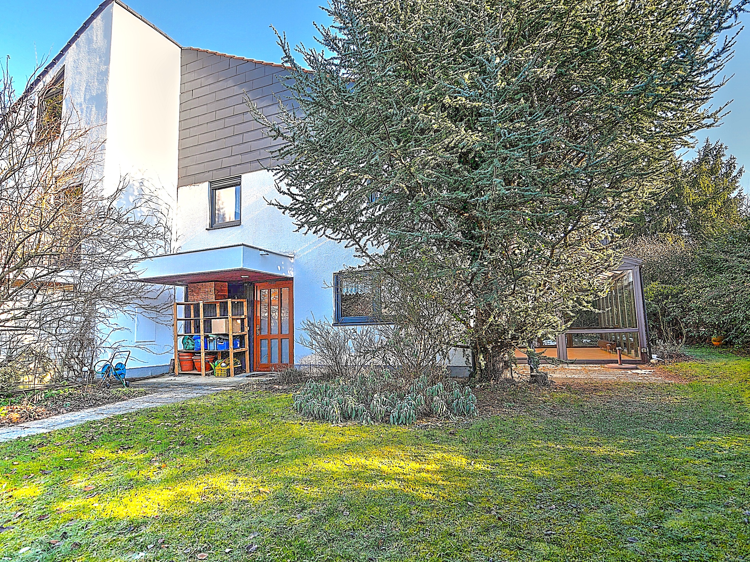 Diese charmante, nach Süd-Westen ausgerichtete Doppelhaushälfte aus dem Baujahr 1972 befindet sich in ruhiger und familienfreundlicher Lage von München Aubing-Lochhausen und bietet viel Platz für das Familienleben über mehrere Ebenen hinweg. Das Haus überzeugt durch einen durchdachten Grundriss, einen großzügigen Wintergarten sowie zahlreiche Nutzungsmöglichkeiten – ideal für junge Familien, die sich ein Eigenheim mit Entwicklungspotenzial wünschen.
