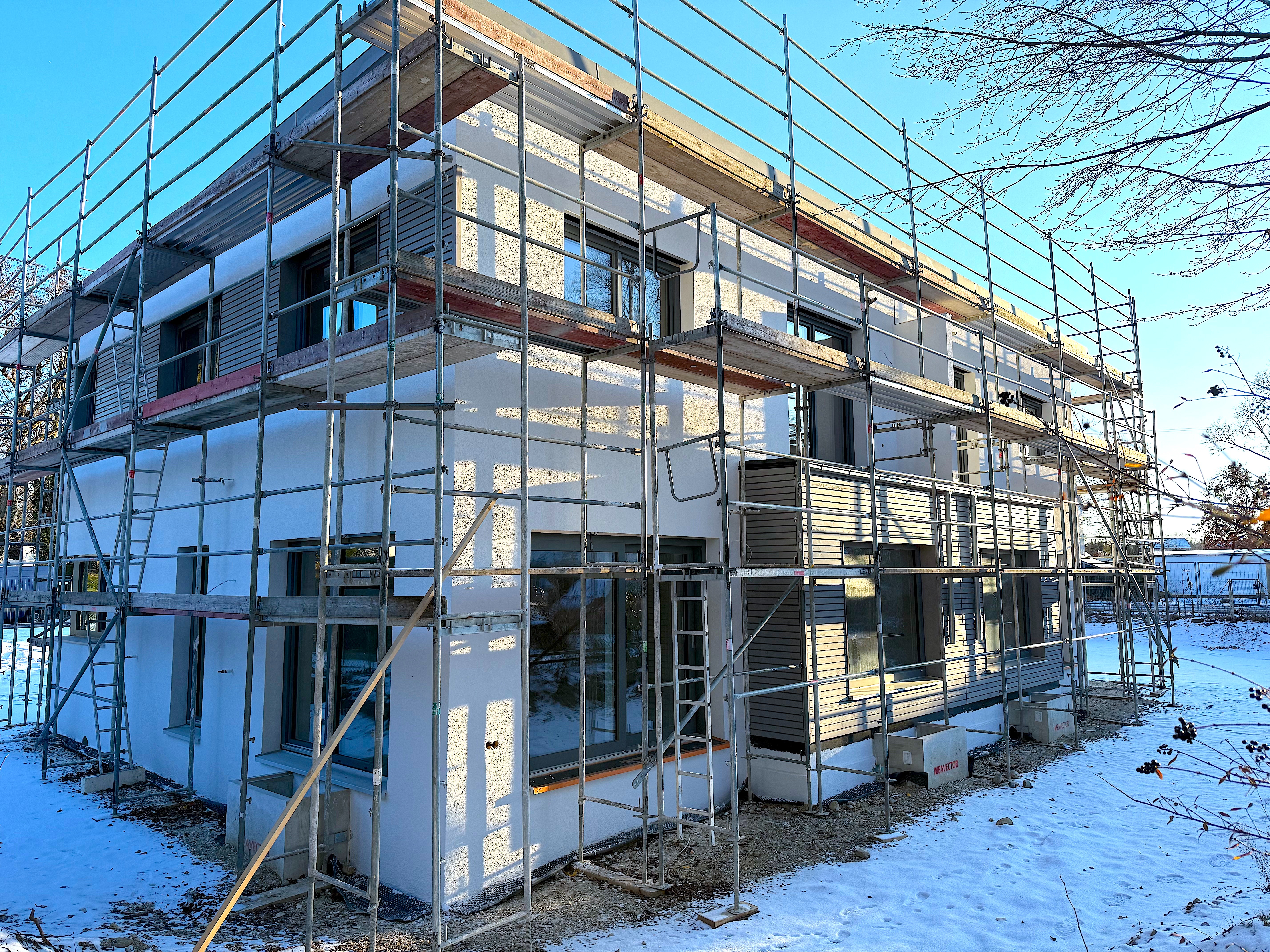 Die Grundstücksplanung beinhaltet zudem die Schaffung von vier PKW-Stellplätzen (2 pro Hälfte) sowie acht Fahrradabstellplätzen, gemäß den bauordnungsrechtlichen Anforderungen der Gemeinde Gauting.