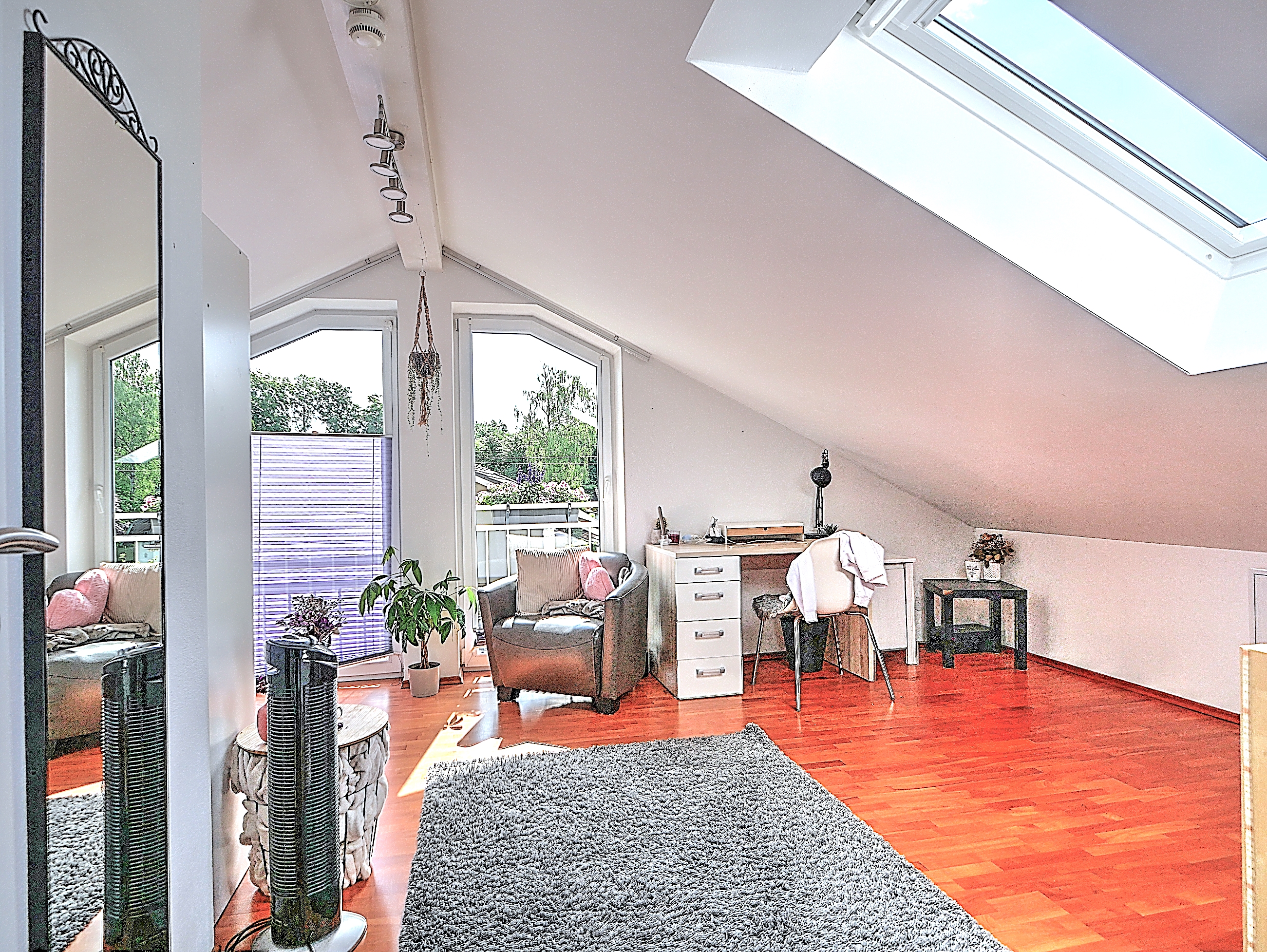 Das Obergeschoss bietet drei gut geschnittene Schlafzimmer mit Parkettboden sowie ein Tageslichtbad mit Dusche, Bidet und Badewanne. Ein wohnlich ausgebautes Dachstudio mit zusätzlichem Duschbad und WC schafft zusätzlichen Raum und vielfältige Nutzungsmöglichkeiten. Im Untergeschoss stehen neben dem klassischen Vorratskeller ein großer Hobbyraum sowie ein Technik-/Versorgungsraum zur Verfügung. Die Beheizung erfolgt über eine Gastherme, die platzsparend im Dachgeschoss installiert wurde.