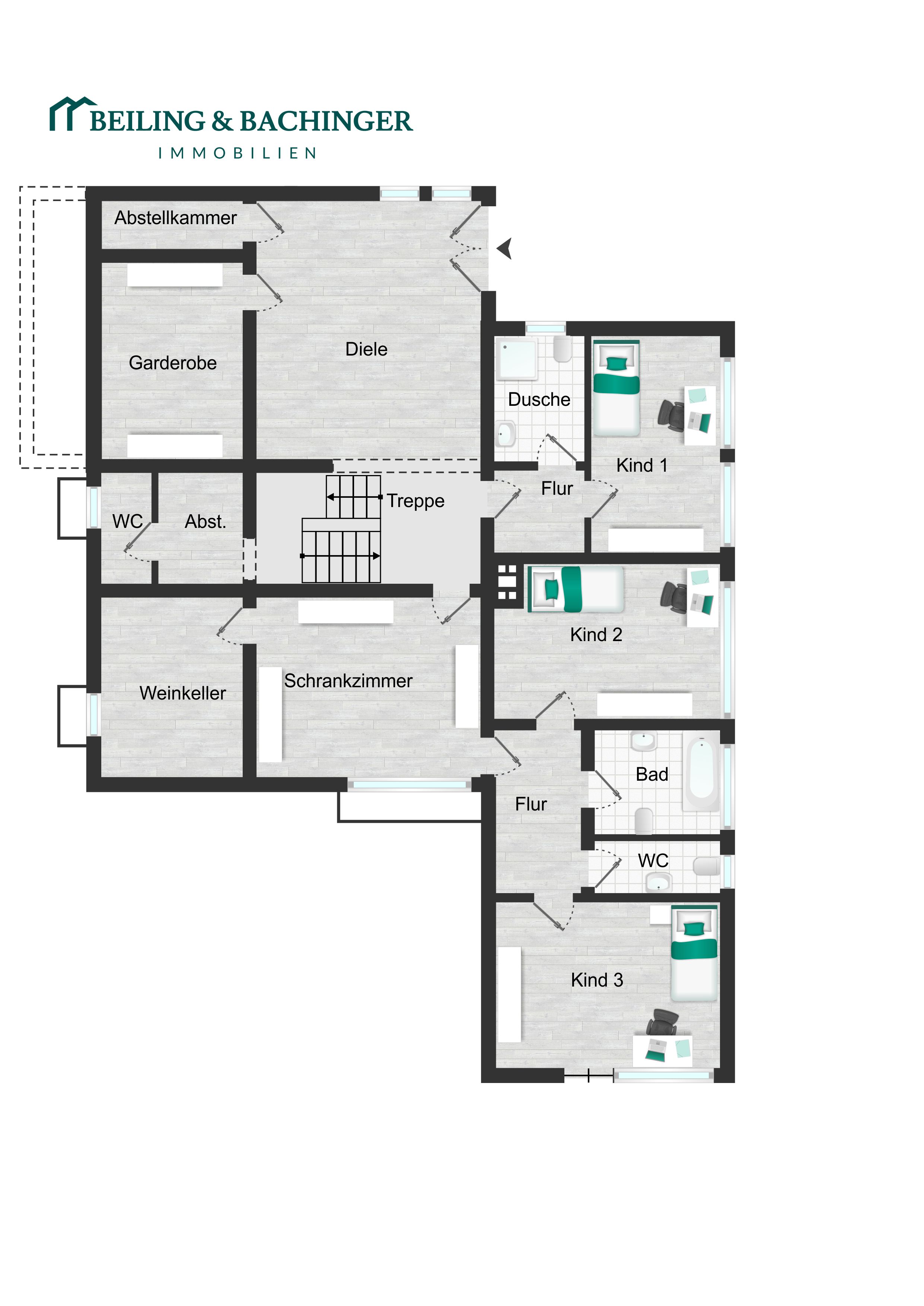 Alle Angaben stammen vom Verkäufer. Die Fa. Beiling & Bachinger Immobilien übernimmt daher keine Haftung für die Richtigkeit der Angaben. Insbesondere die Angaben zur Wohnfläche, zur Nutzfläche und zur Aufteilung der Wohn-/Nutzfläche sind von uns nicht durch ein eigenes Aufmaß oder eine eigene Wohnflächenberechnung kontrolliert worden. Die Angaben zum Baujahr sind nicht durch eine Einsicht in die Bauakte überprüft worden.