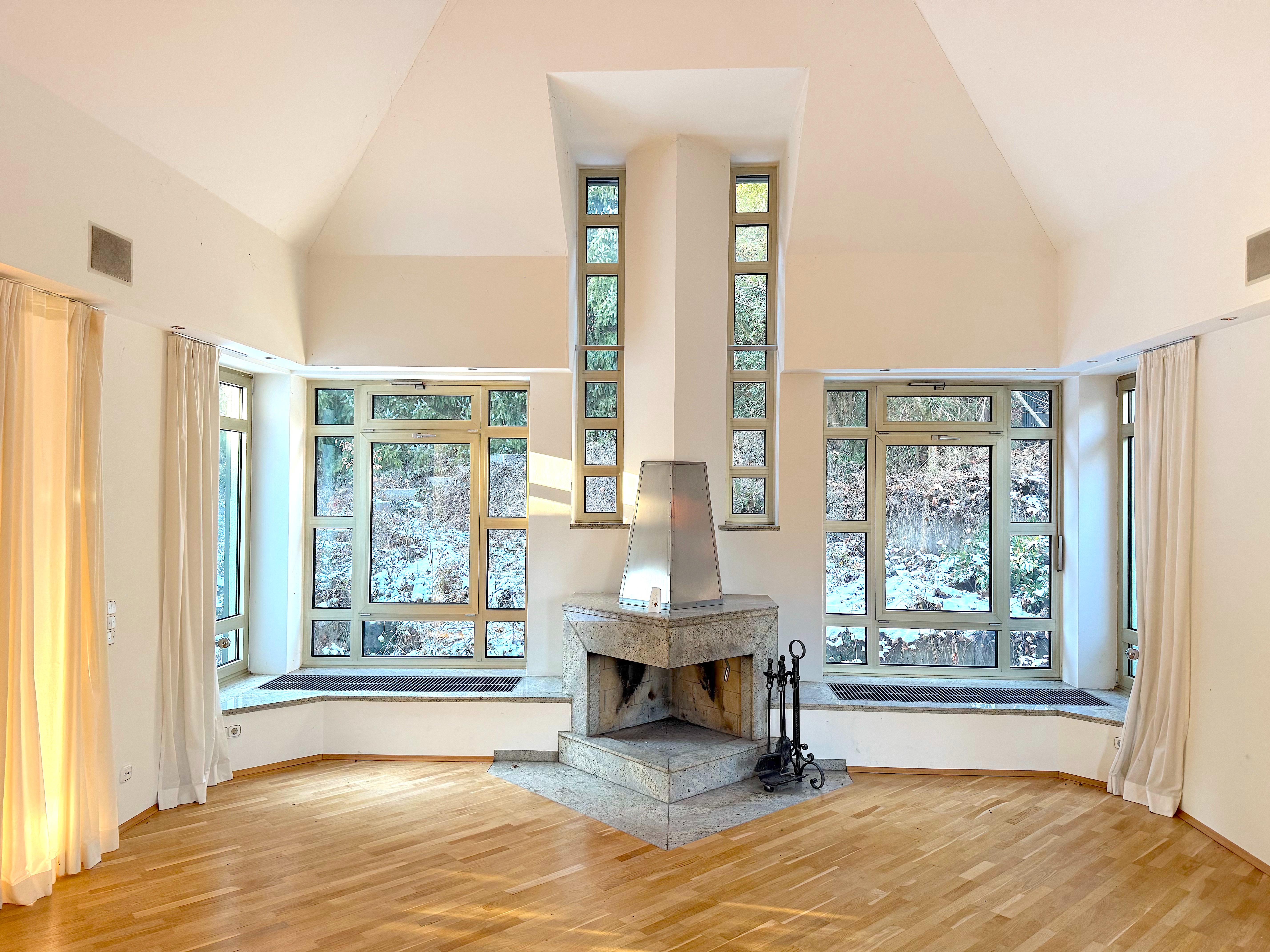 Das Haus wurde ursprünglich Mitte der 1960er Jahre errichtet und in den 1980er Jahren um einen markanten Anbau erweitert. Die Raumaufteilung ist großzügig und vielseitig nutzbar – ideal für Familien, die Wert auf Platz und Individualität legen. Neben sieben Zimmern, mehreren Bädern und weitläufigen Terrassen bietet die Liegenschaft zusätzliche Besonderheiten wie einen Kamin, zahlreiche Einbauten und sogar einen Schutzraum im Untergeschoss.