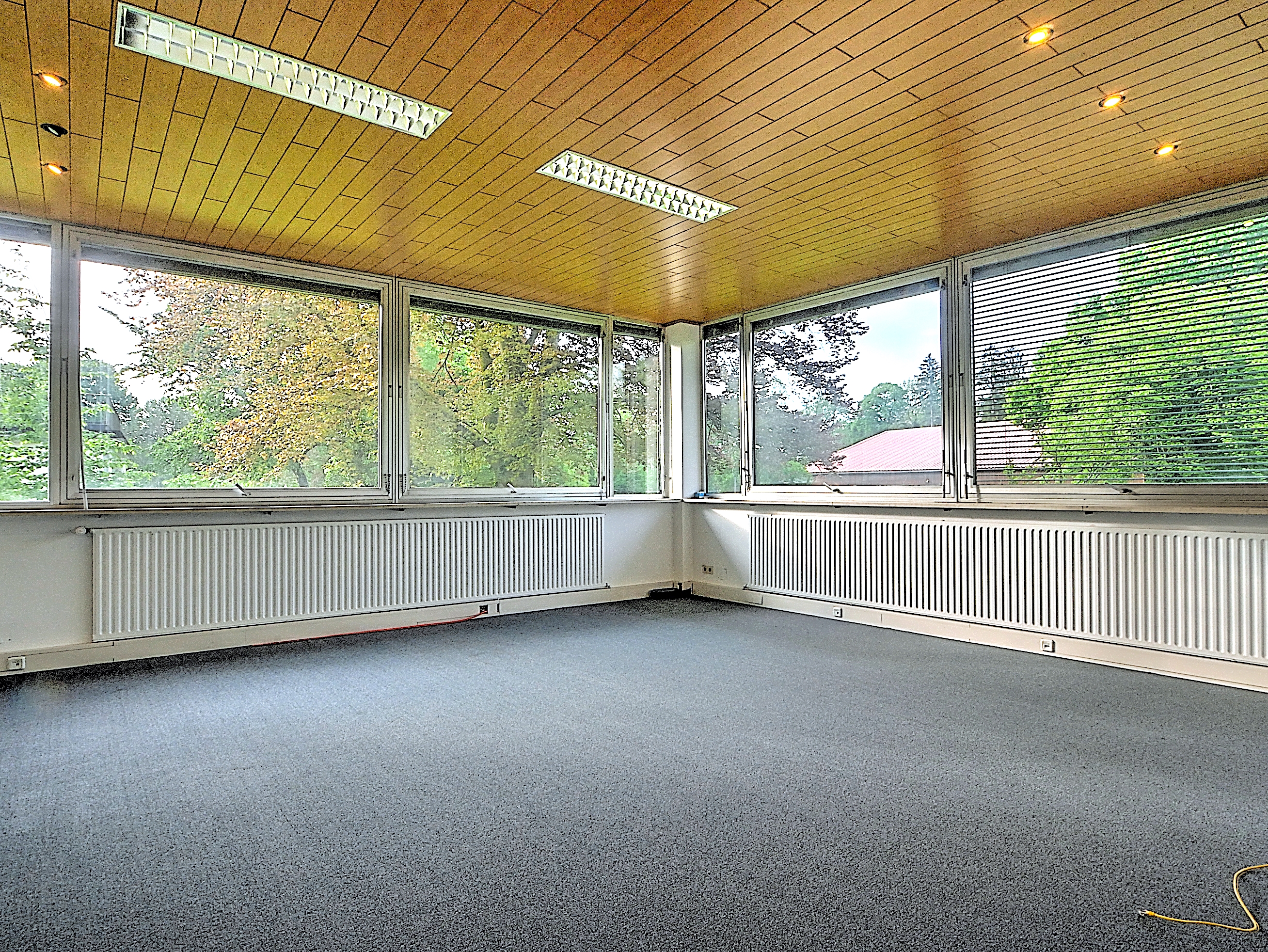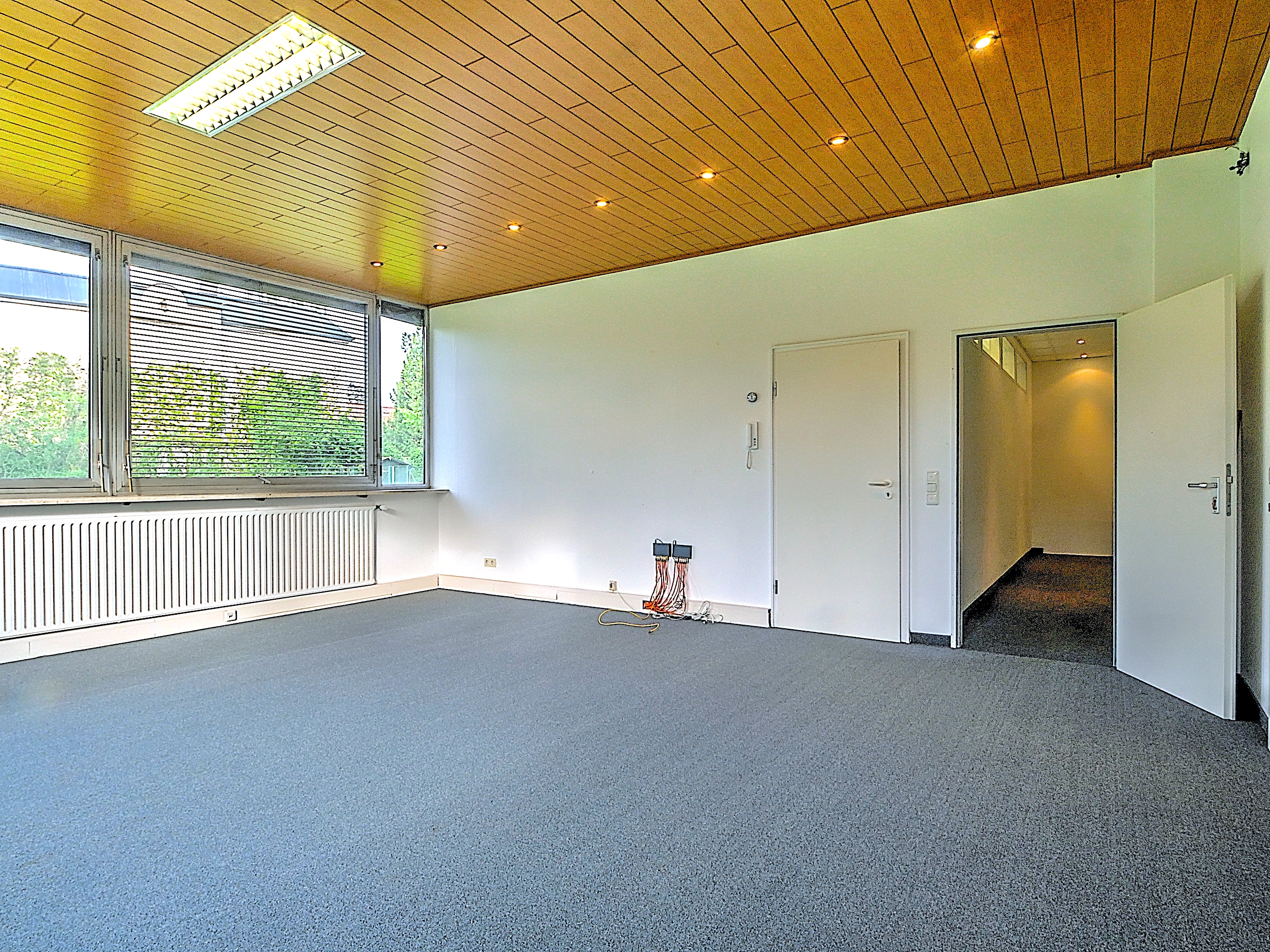 Diese gepflegte Gewerbeeinheit bietet zwei helle Büroräume mit großzügigen Fensterfronten, die für eine angenehme Arbeitsatmosphäre und viel Tageslicht sorgen. Ausgestattet mit dunklen Teppichboden, vermitteln die Räume eine freundliche und professionelle Umgebung – perfekt für konzentriertes Arbeiten in angenehmer Ruhe.