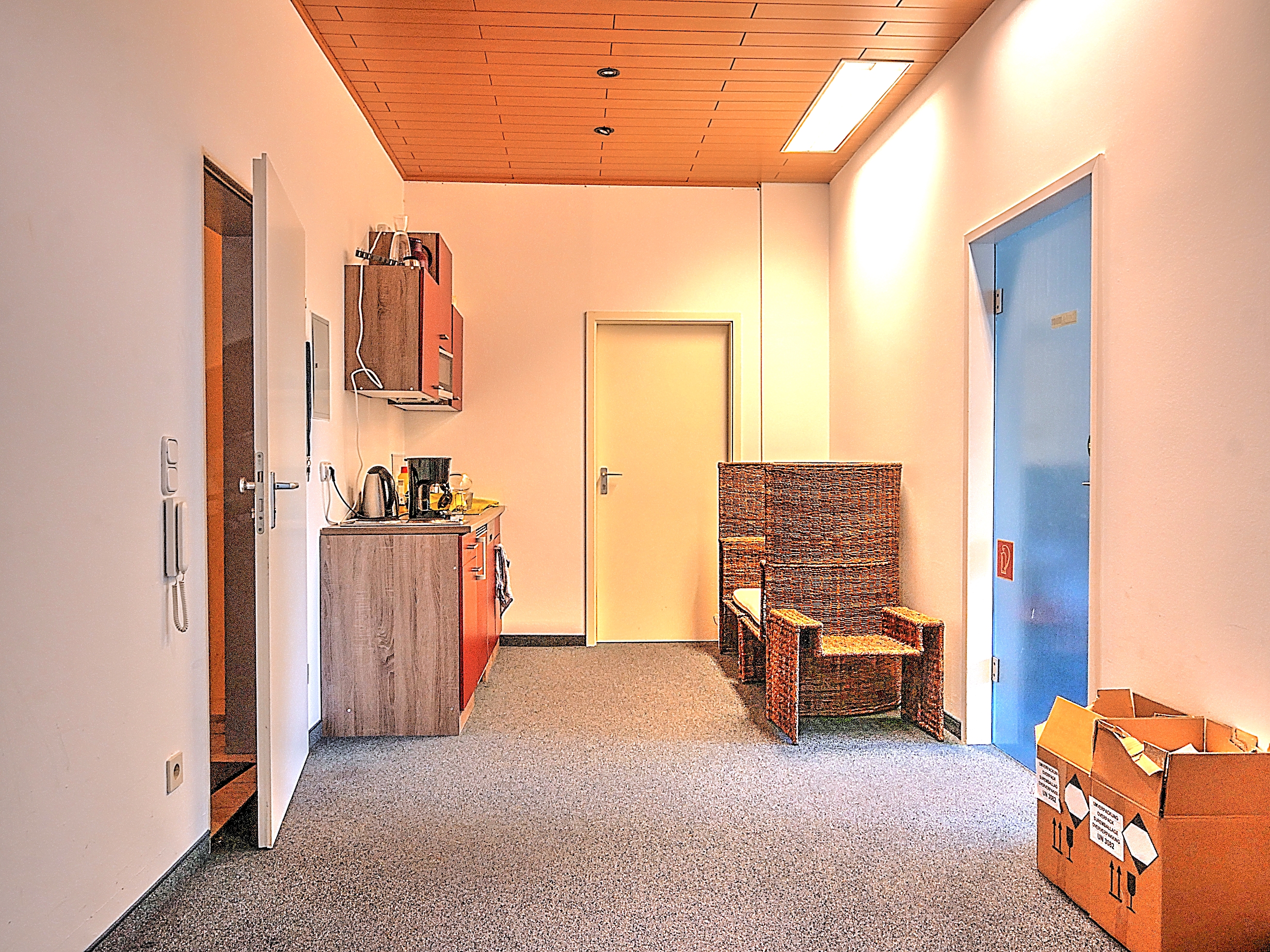 Die Büroräume befinden sich in einem ruhigen Mehrfamilienhaus mit gemeinschaftlich genutztem Eingang. Auch die moderne Küchenzeile, wie auf den Bildern dargestellt, steht Ihnen zur gemeinsamen Nutzung mit der benachbarten Büroeinheit zur Verfügung. Zwei separate WCs sind über den Flur erreichbar und ebenfalls gemeinschaftlich nutzbar.