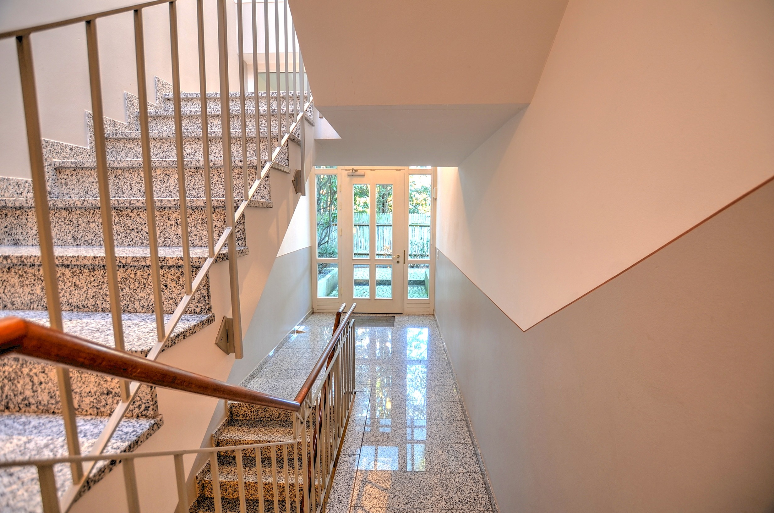Die frisch modernisierte Dachgeschosswohnung befindet sich in einem äußerst gepflegten Haus in begehrter Lage von Grünwald. Bereits der einladende Eingangsbereich des Hauses vermittelt einen eleganten ersten Eindruck. Über das Treppenhaus erreicht man das zweite Obergeschoss und damit den Zugang zur Wohnung.