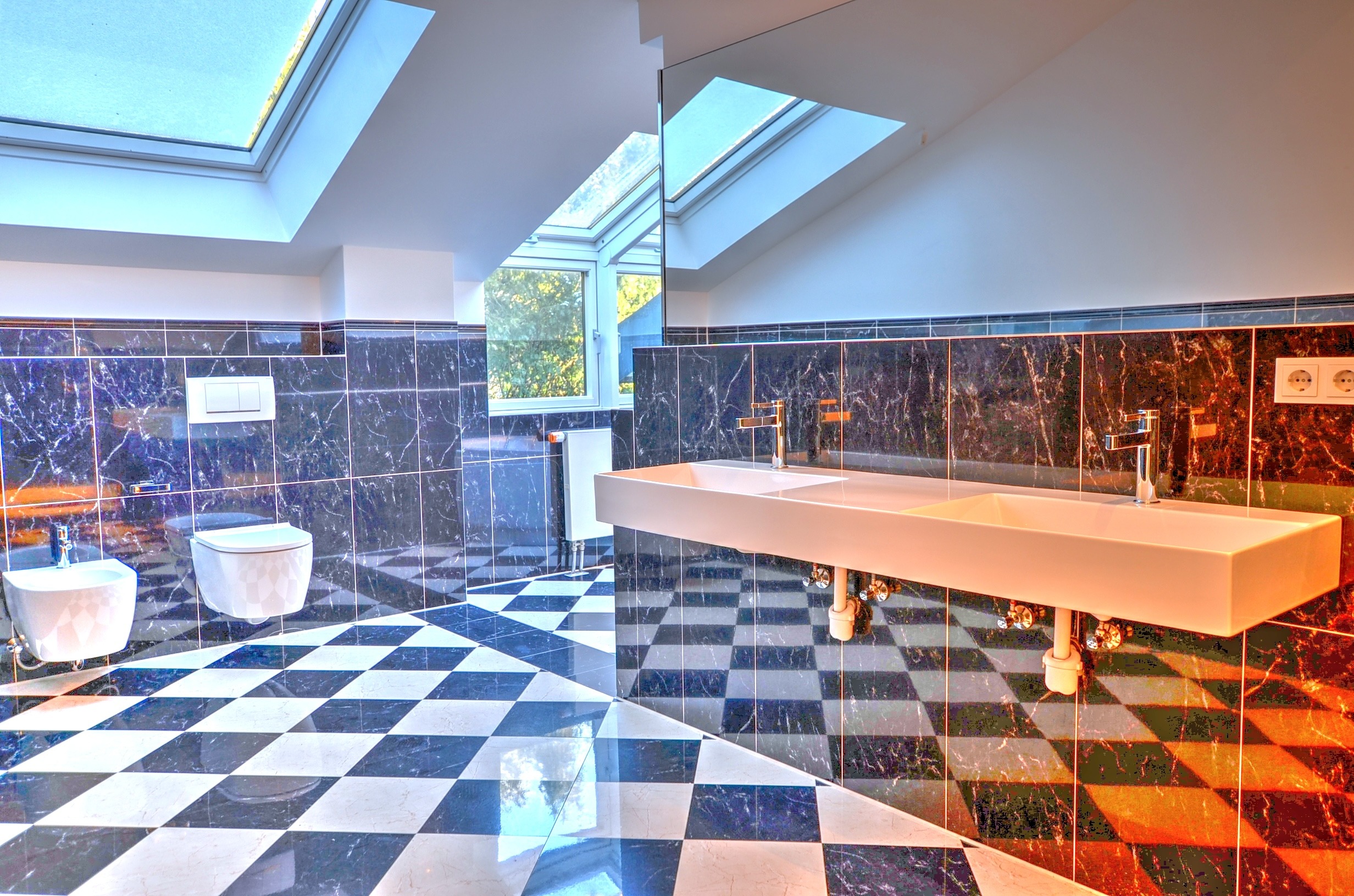 - Ausstattung des Bades Fenster, Dusche, Badewanne