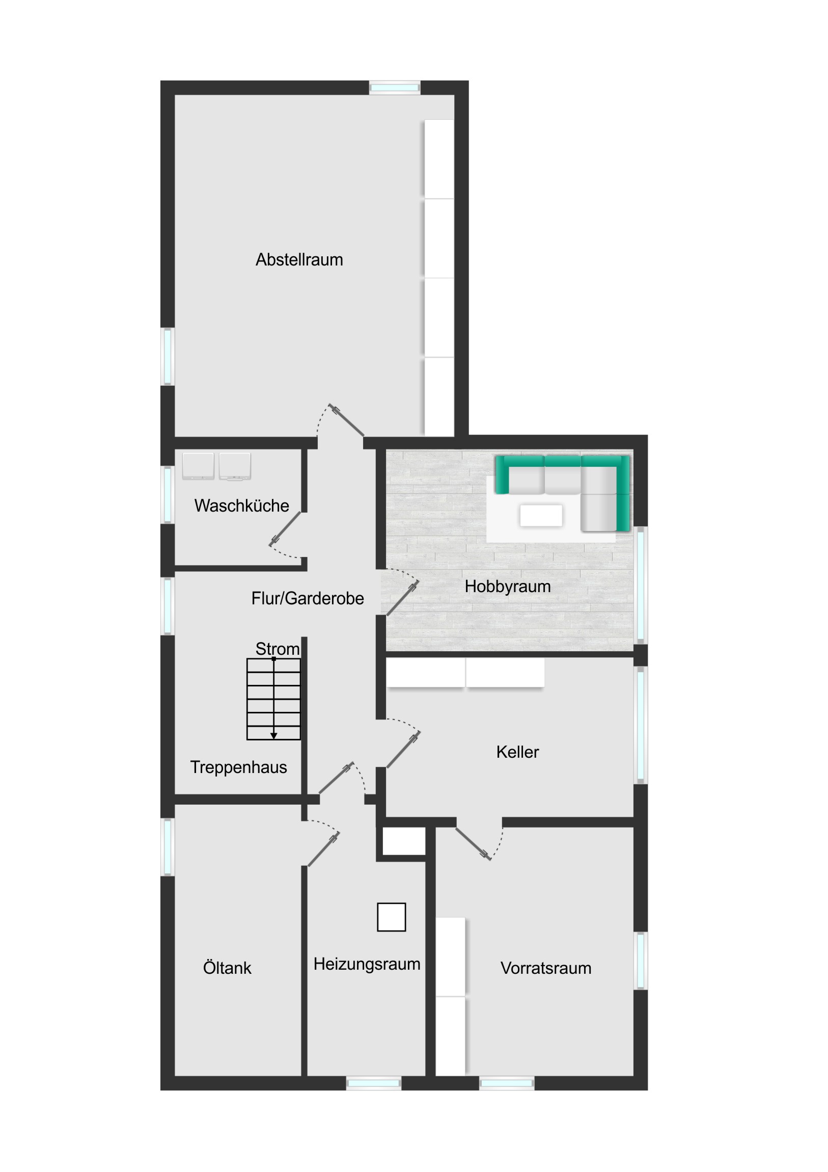 Das Haus ist vollständig unterkellert, hier stehen den Mietparteien jeweils eigene Kellerräume zur Verfügung.