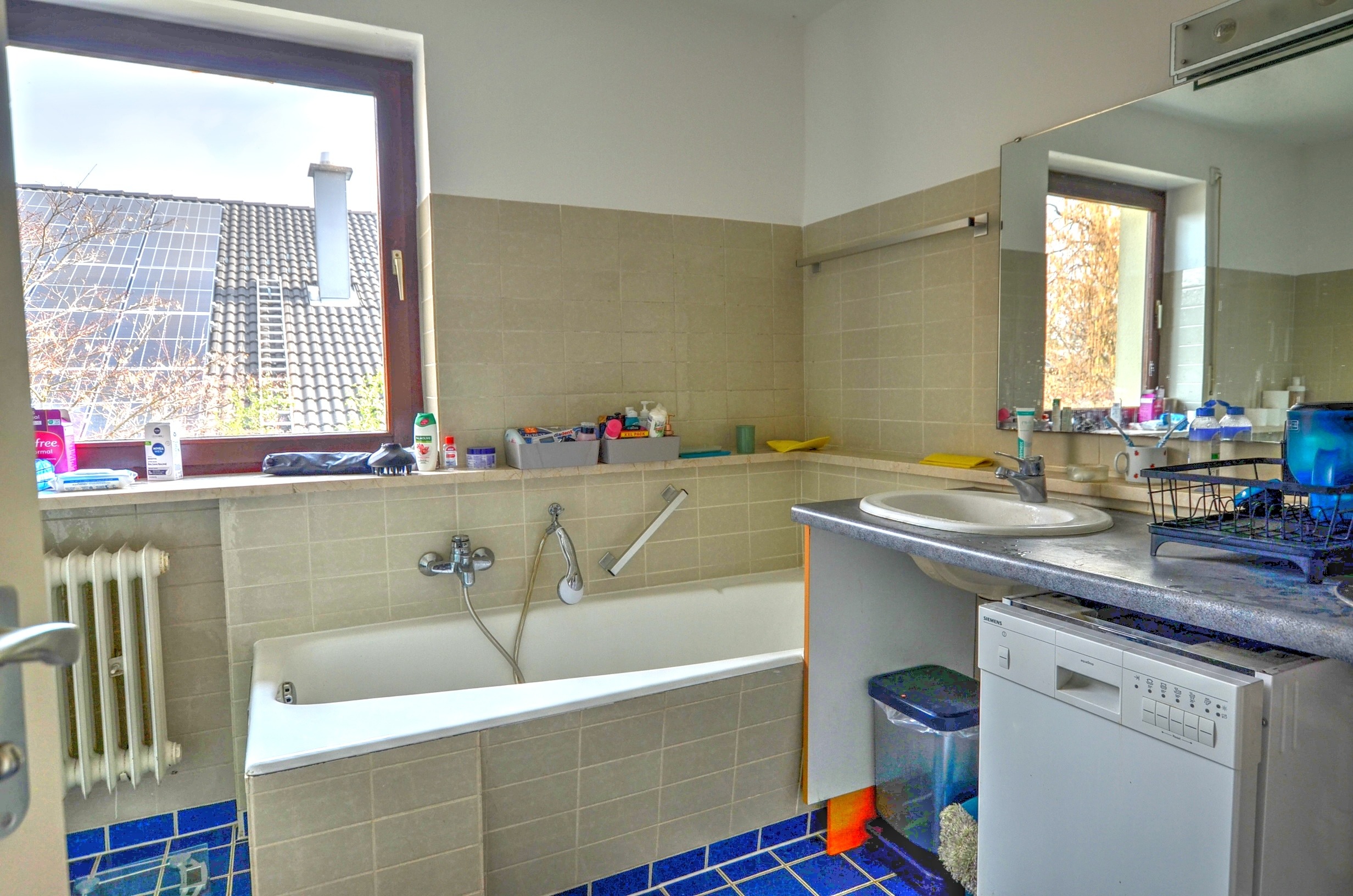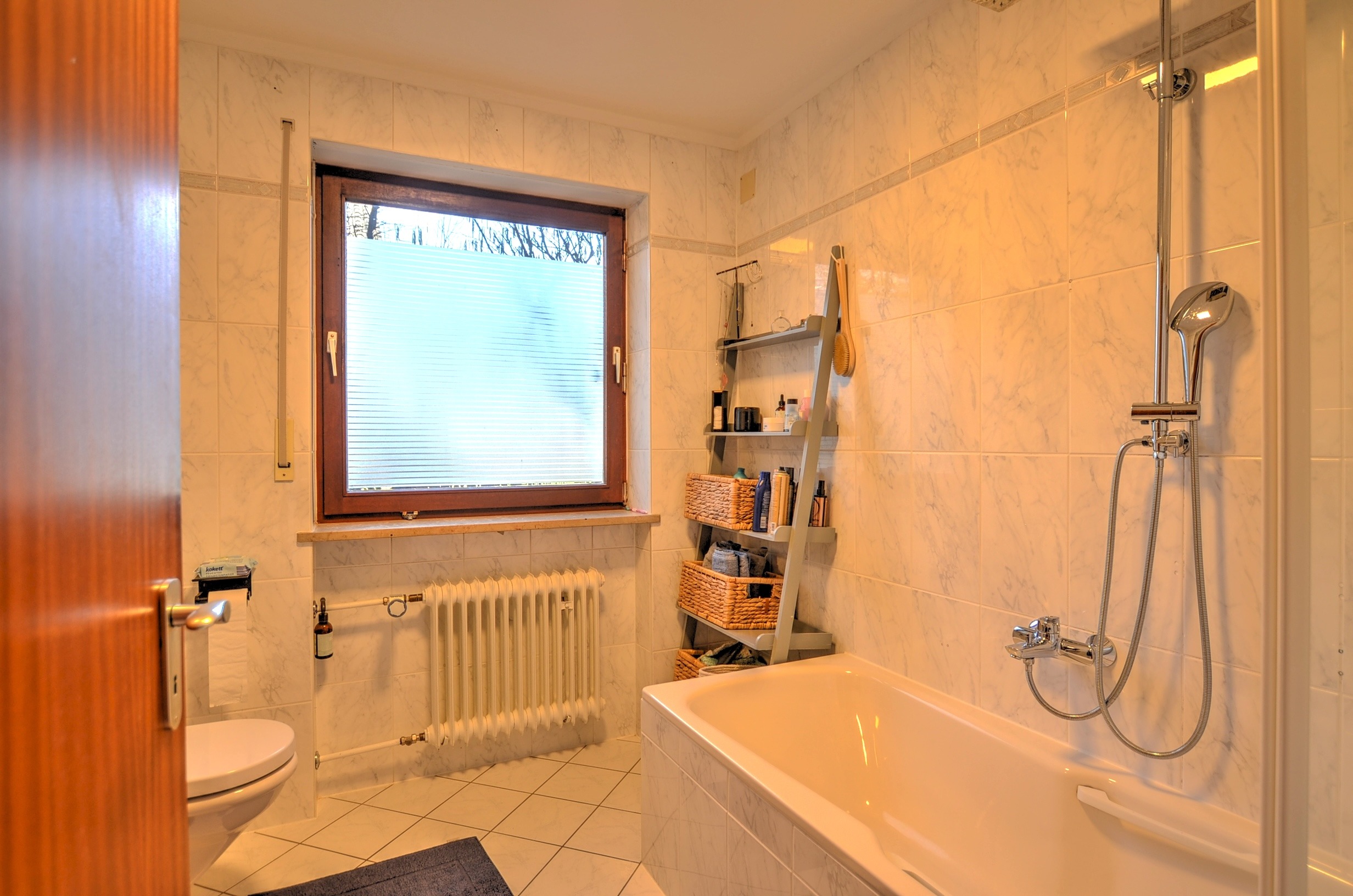 - Ausstattung des Bades Badewanne, Dusche, Fenster